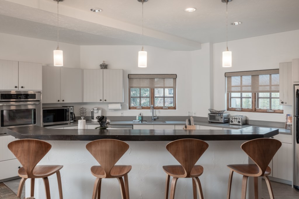 - Dining table for 8 plus additional seating for 4 at the kitchen island